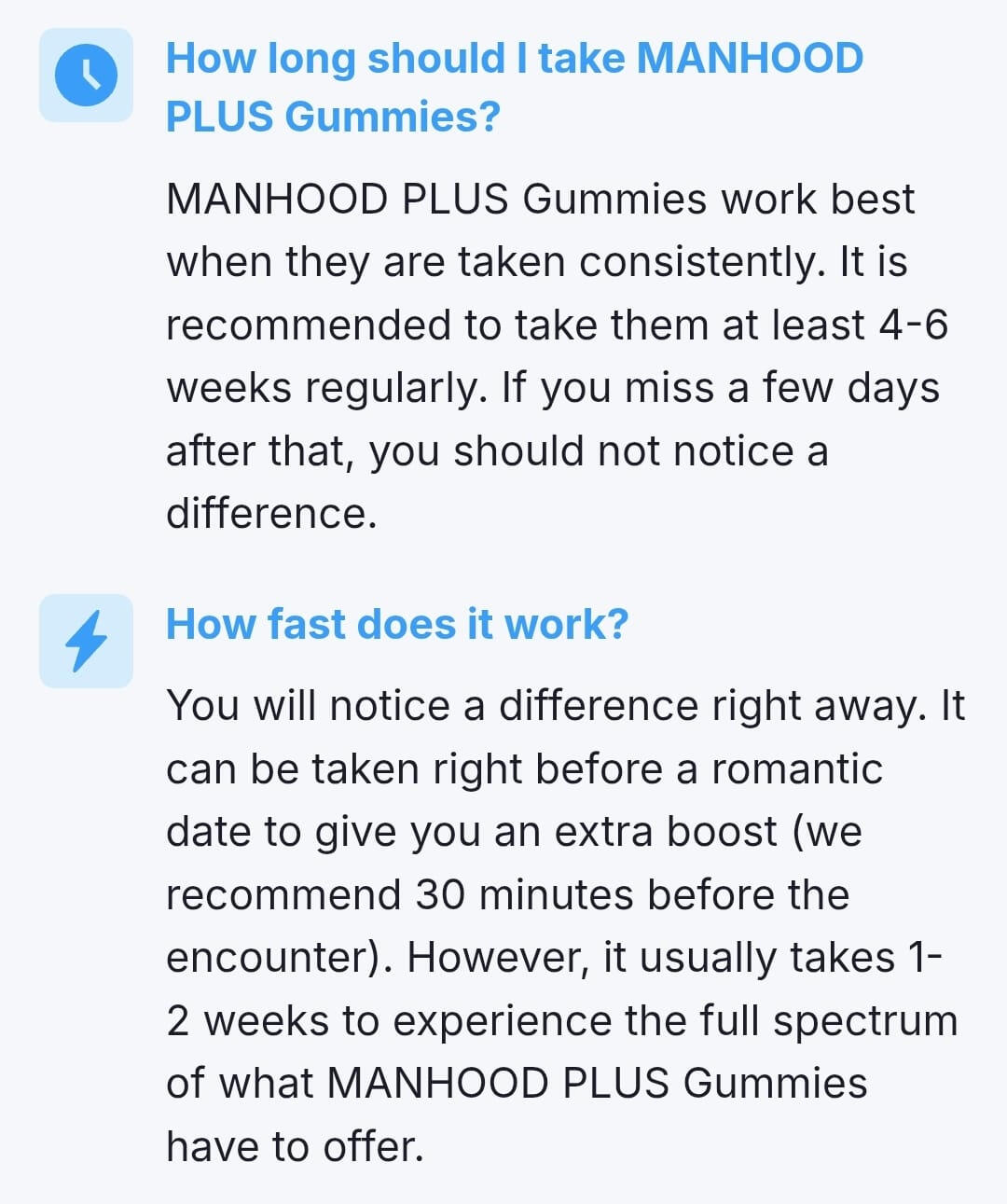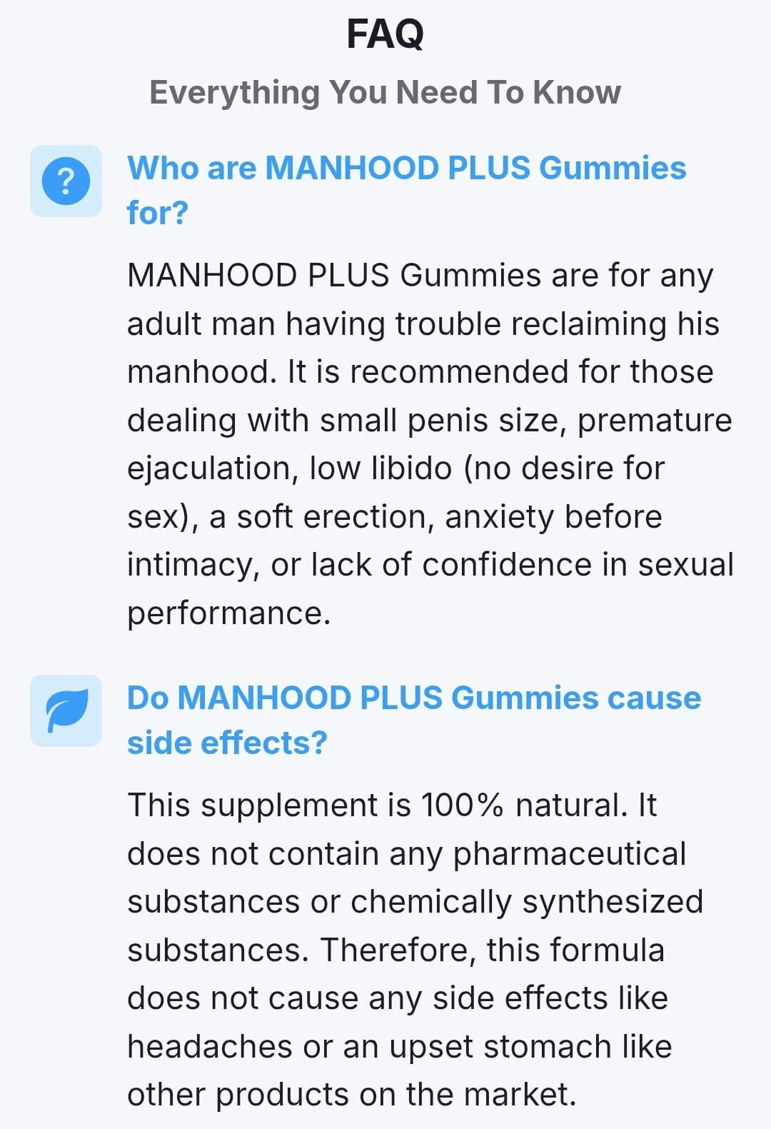 Money-Back Guarantee! We're so confident that MANHOOD PLUS Gummies will work for you that we are offering a 60-day Money-Back Guarantee! So, feel confident that you will get your result, or your money back!